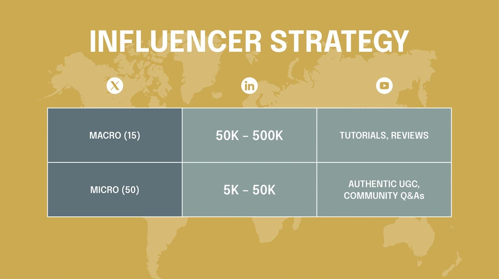 We launched a full-scale 6-month growth engine that combined "shilling" contests and educational content on X with professional B2B authority building on LinkedIn. By partnering with over 60 influencers for authentic reviews and tutorials, we blew past our goals—scaling from zero to over 50,000 active users.